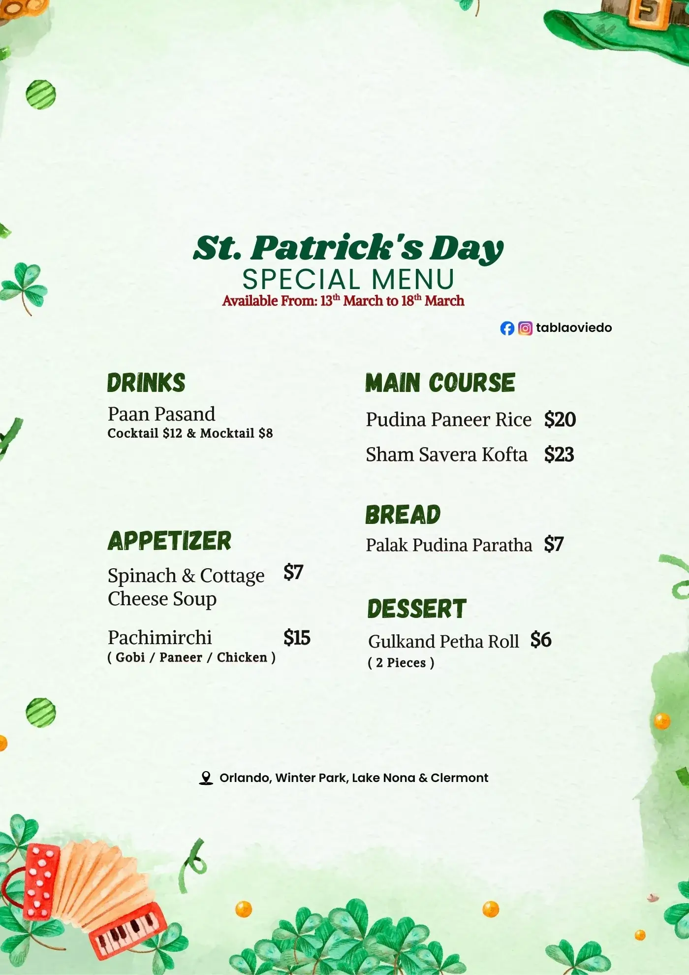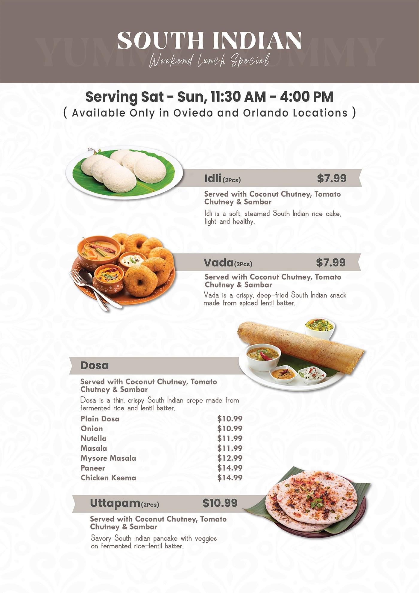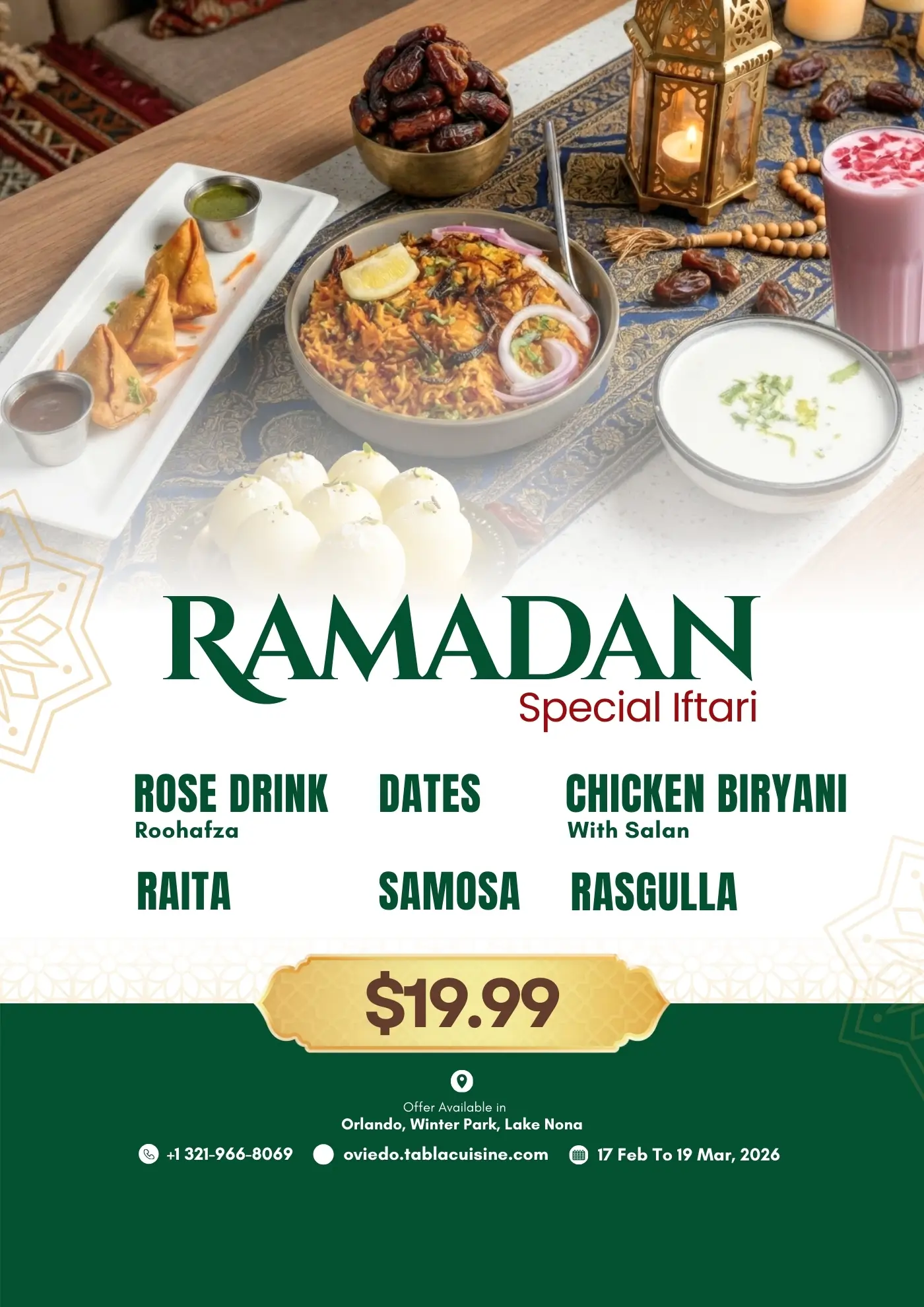 At Tabla Indian Restaurant in Oviedo, we are your go-to destination for authentic Indian and multi-cuisine dishes, carefully prepared to preserve the true flavors of each cuisine. Whether you’re stopping by for breakfast & lunch in Oviedo or planning a relaxed dinner, Tabla offers something for every craving. From flavorful Thai food and popular Indo-Chinese dishes in Oviedo to the best Indian food in Oviedo, our diverse menu has you covered. Located just 2 miles from the University of Central Florida, our kitchen serves homestyle curries that feel like a home away from home for students and locals alike.